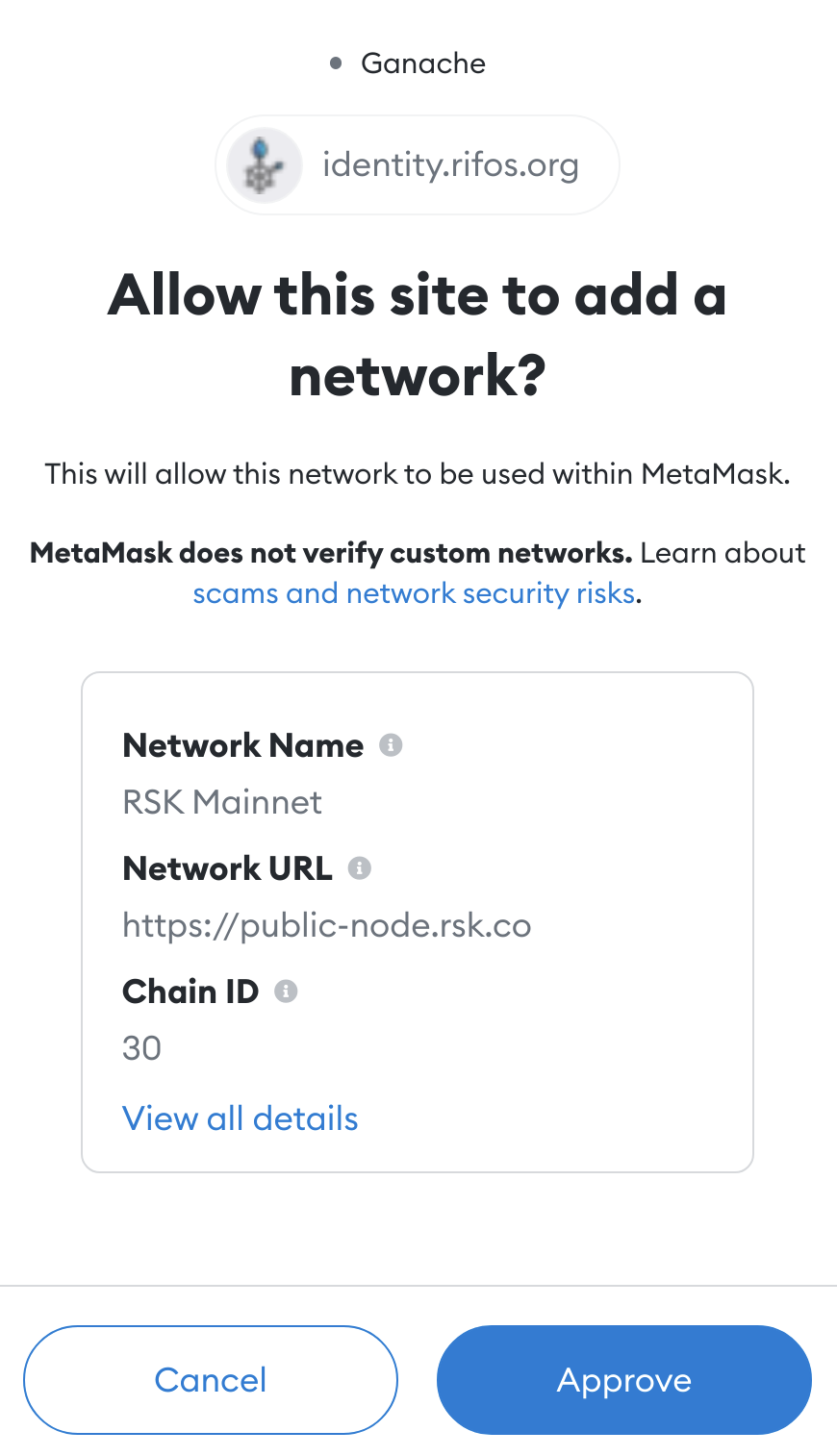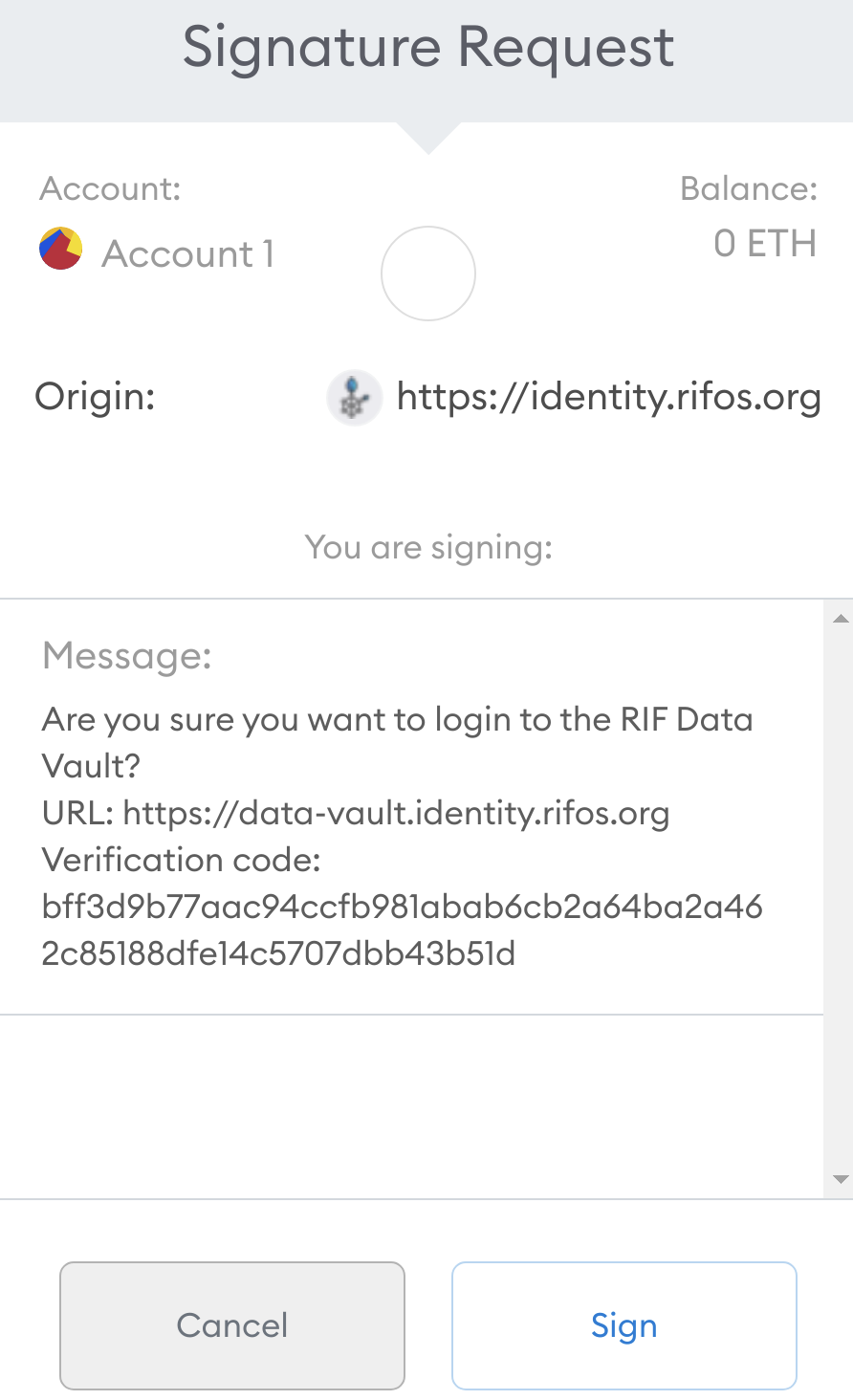 You will be presented with a popup from MetaMask, which essentially is asking you whether you trust RIF Identity Manager.