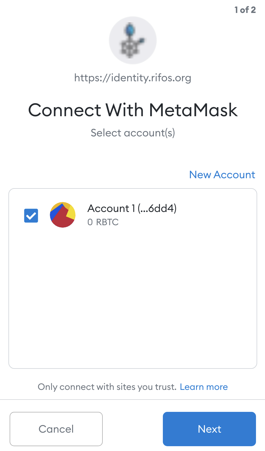 Click "Next". This allows MetaMask to interact with RIF Identity Manager